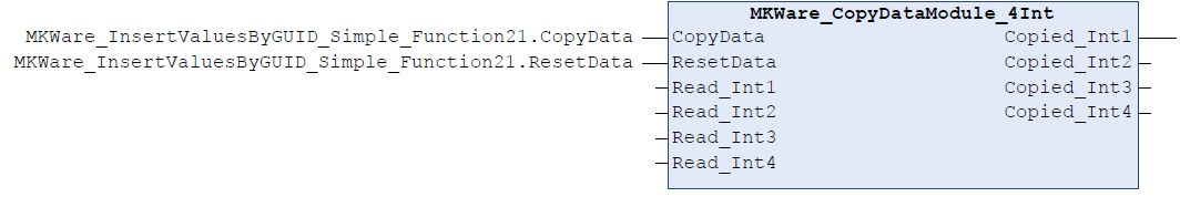 Dieser Funktionsbaustein kann 4 Integer Werte kopieren. Das Kopier-/Reset-Signal sollte von den PDA-FBs „normal“ oder „einfach“ kommen.