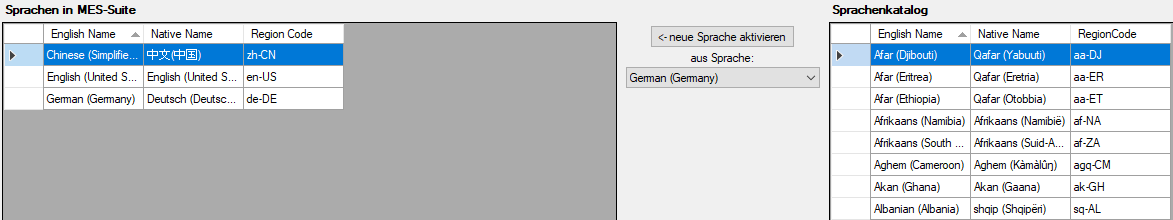 Die Sprachverwaltung in MKSupervisor ist flexible und kann von jedem Standort individuell gepflegt werden. Hier können neue Sprachen aktiviert und Übersetzungen im- und exportiert werden.