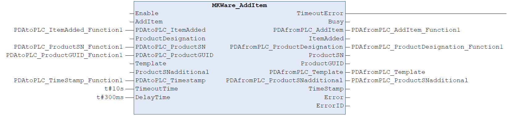 PDAfromPLC_AddItem: BOOL; (* Output to MK|Ware: If the status is TRUE, a product SN should be generated. *)