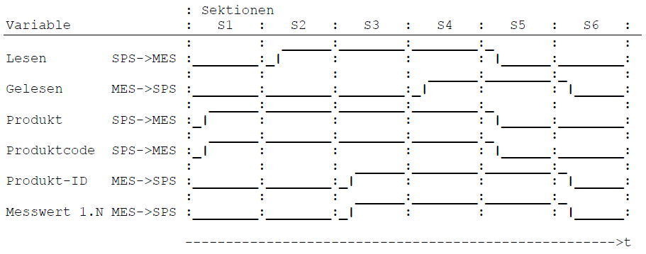 | Read* | BOOL | This variable describes MES with TRUE, if the data was stored in the database. MES resets it to FALSE | From MES to PLC | |
